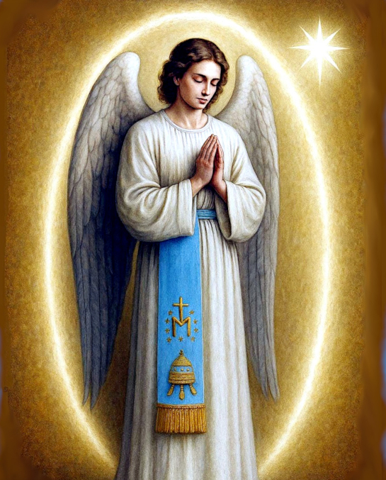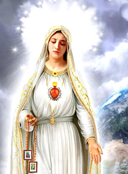 Tizenkét csillagos koronáddal az Atya titkába viszel minket, Szentlélektől tündöklő, aki nekünk adod isteni Gyermekedet, a mi reménységünket, a világ egyetlen Üdvösségét. Te megnyitod nekünk az ő szívét, az örömnek és a fájdalomnak, a fénynek és a dicsőségnek, az érettünk emberré lett Isten Fia titkának a mélységét. A te lábaidnál, a szentek nyomain haladva, Isten családjának érezzük magunkat.